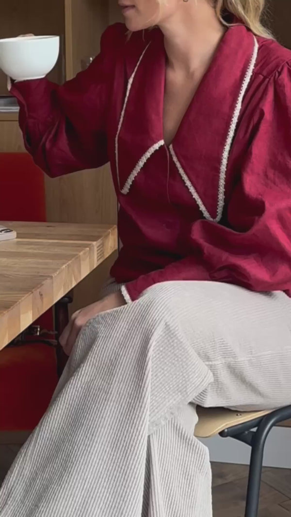 Spinka do włosów z bawełnianą kokardą w czerwone paski