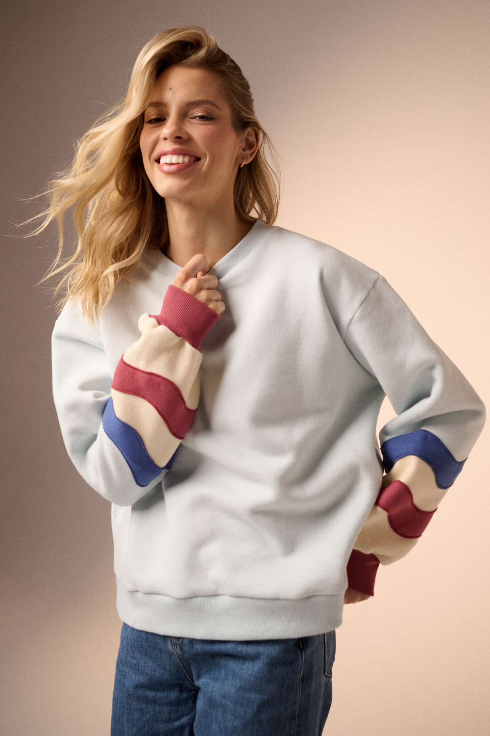Zaprojektowana i uszyta w Polsce z myślą o codziennym komforcie, który zostaje z Tobą na długo. Wykonana z wysokogatunkowej bawełnianej dzianiny o gramaturze 320 g, z wykończeniem skin peach i drapaną dresówką typu „miś” od wewnątrz — daje natychmiastowe uczucie ciepła i otulenia. Oversize’owy krój z obniżoną linią ramion zapewnia swobodę i nonszalancki look, a ściągacze przy mankietach i na biodrach dbają o idealne dopasowanie. Kontrastujące wstawki na rękawach, wykonane z tego samego materiału, subtelnie podkręcają formę i nadają bluzie charakteru. Materiał posiada certyfikat Oeko-Tex® Standard 100, co oznacza bezpieczeństwo dla skóry i najwyższą jakość. To bluza stworzona po to, by służyć przez lata — odporna, ponadczasowa i niezawodnie komfortowa. Idealna w zestawie z ulubionymi jeansami, na chłodne poranki, długie spacery i spokojne wieczory. Otula. Grzeje. Zostaje z Tobą i czuje Twój Flow.
