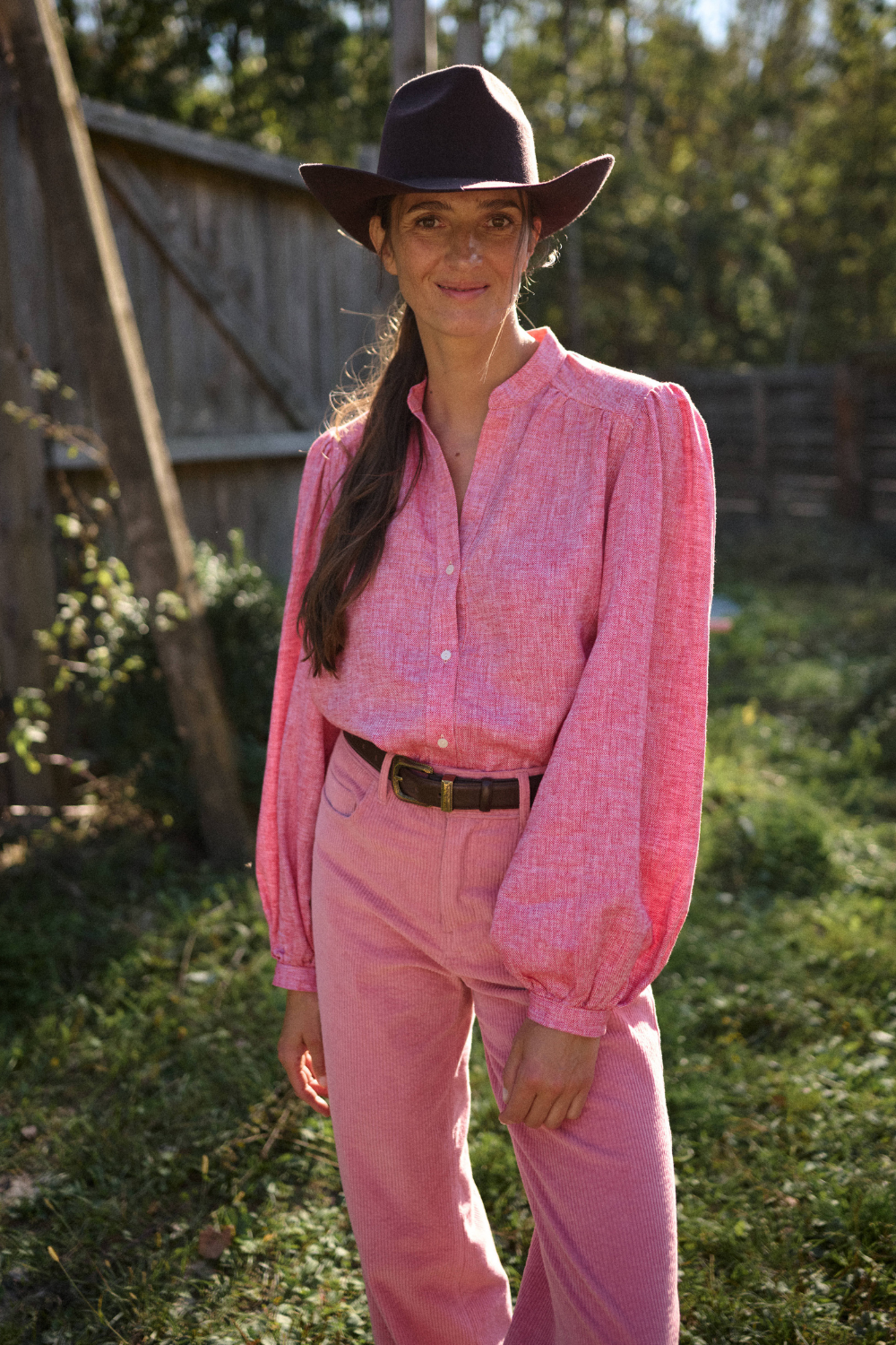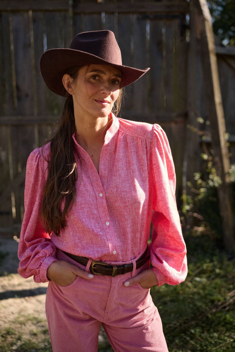 - strukturalna tkanina melanżowa w nieoczywistym odcieniu czerwieni
