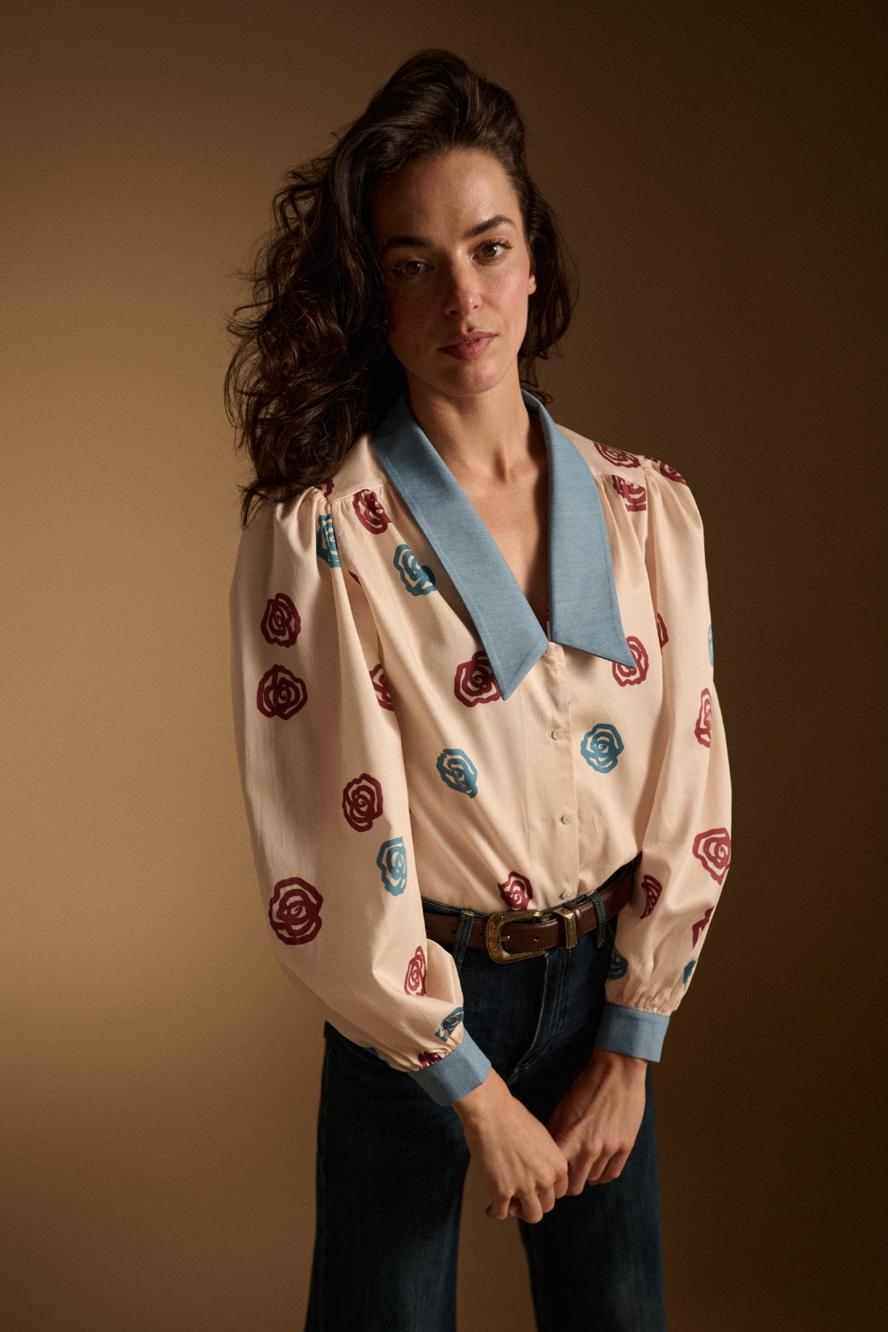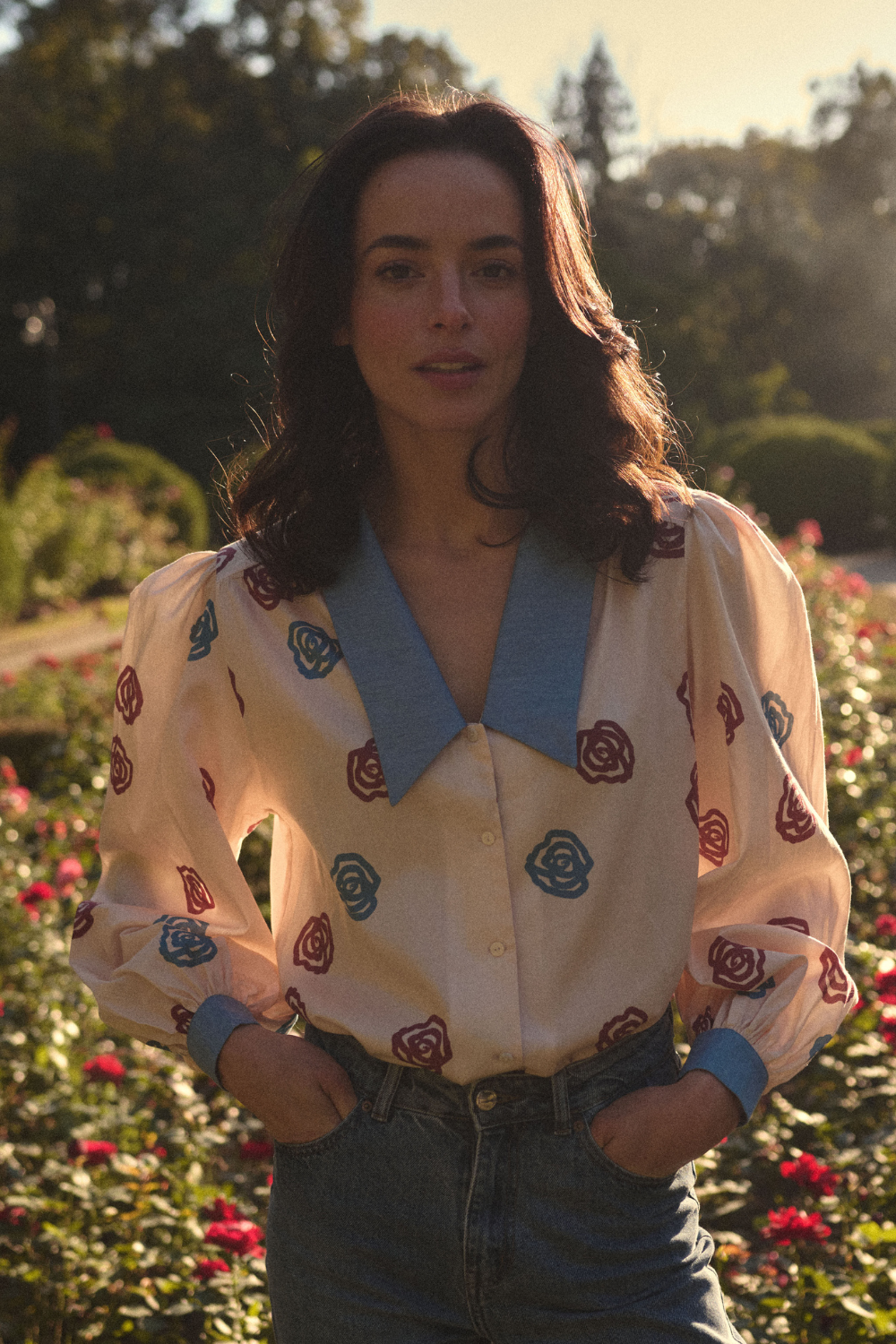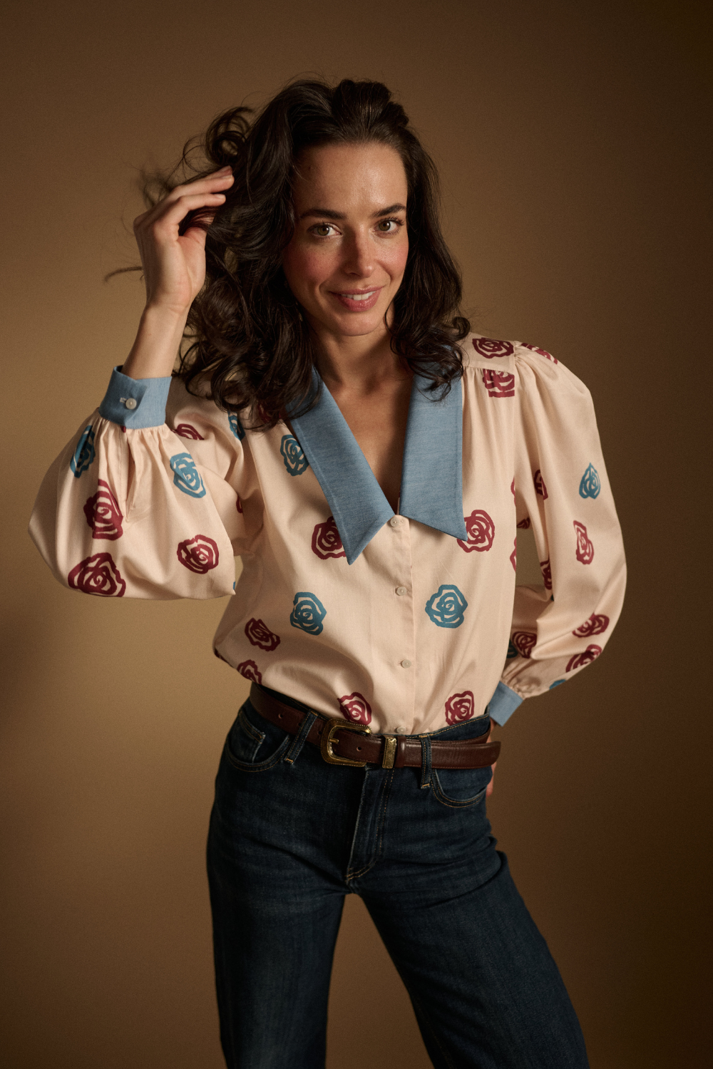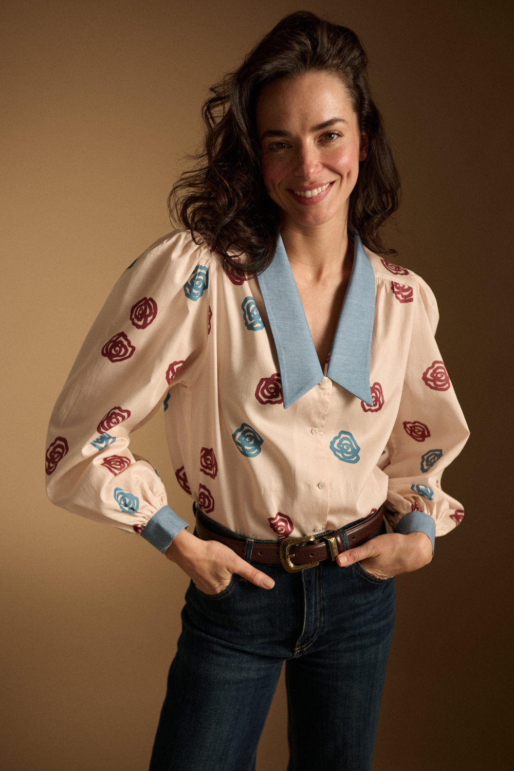 Poznajcie nową wersję bestsellerowej koszuli Stephanie. Obszerny krój, rękawy, wydłużone mankiety i ten kołnierz, który zdominował trendy w modzie. Do tego bawełniana tkanina. Tutaj nic się nie zmieniło. Zmieniła się kolorystyka. Tym razem Stephanie jest w autorski print róż w kolorze bordo oraz niebieskim do tego idealnie komponuje się jej denimowy kołnierz. To idealna koszula do Twoich stylizacji.