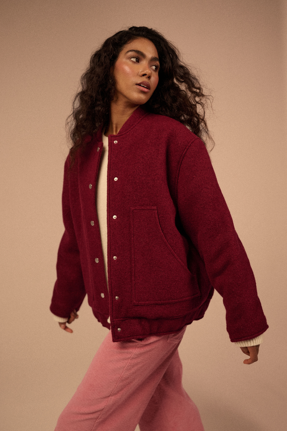 Zestaw w pięknym, głębokim odcieniu berry Bomberka Oslo Wasza ulubiona 100% wełniana bomberka w nowej odsłonie – teraz dodatkowo ocieplona, by sprostać nawet największym mrozom. Ma luźny, oversize’owy krój, szeroką gumę u dołu i eleganckie napy z grawerowanym logo. Doskonała zarówno do casualowych, jak i bardziej eleganckich stylizacji. Jej wyjątkowy kolor nada charakteru każdemu lookowi. Czapka z extrafine merino wool Miękka, otulająca czapka z wysokiej jakości wełny merino, idealnie dopasowana kolorystycznie do bomberki, tworząc spójny, efektowny zestaw. Razem tworzą komplet, który zachwyca wygodą, ciepłem i ponadczasowym stylem.
