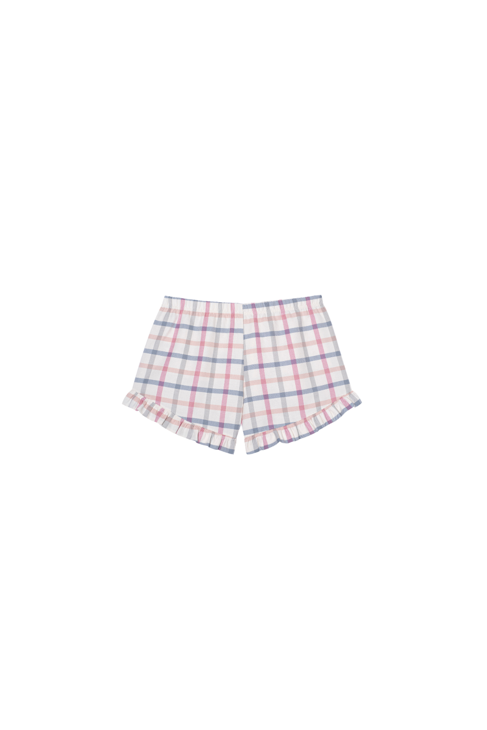 - w zestawie luźne spodenki w kratę wykończone falbanką oraz oversizowy bawełniany t-shirt