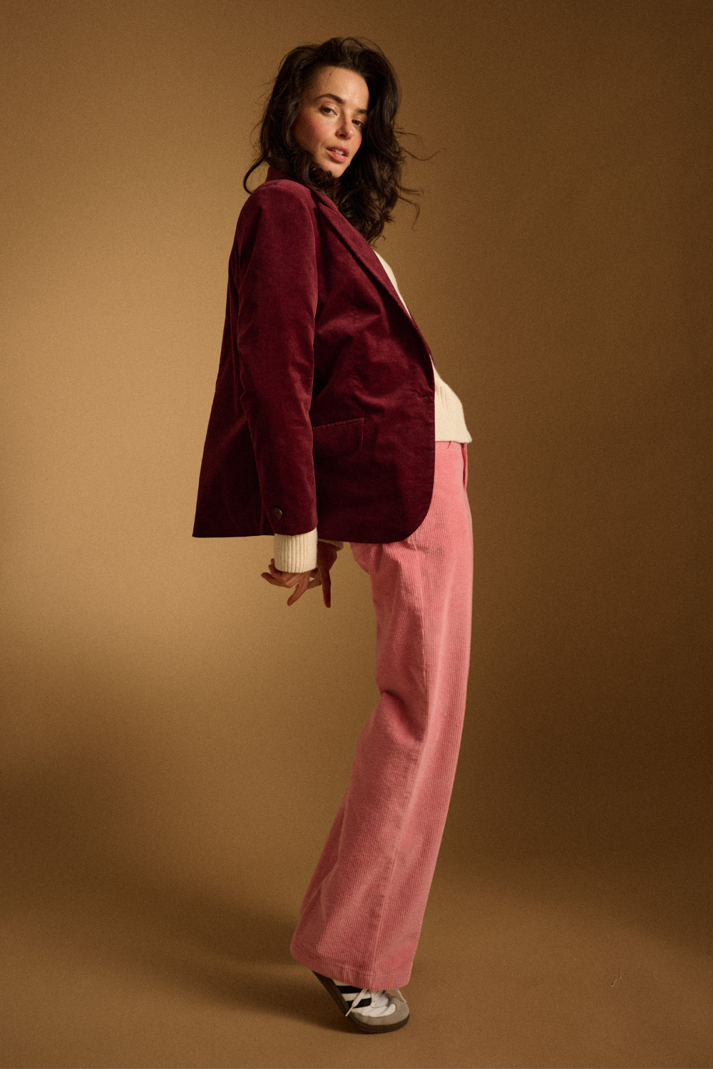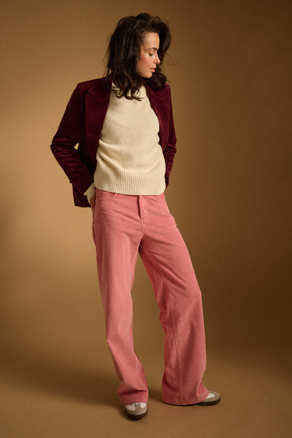 Spodnie Harper to połączenie luzu, naturalnych tkanin i kobiecej elegancji. Uszyte w Polsce z miękkiego, certyfikowanego bawełnianego sztruksu, mają luźny krój, szerokie nogawki i praktyczne kieszenie. Tym razem w unikalnym odcieniu różu. Subtelny haft czerwonej róży na tylnej kieszeni dodaje im nonszalanckiego charakteru. Idealne do T-shirta, swetra, marynarki lub bluzy — klasyk z duszą sleepless in Warsaw.