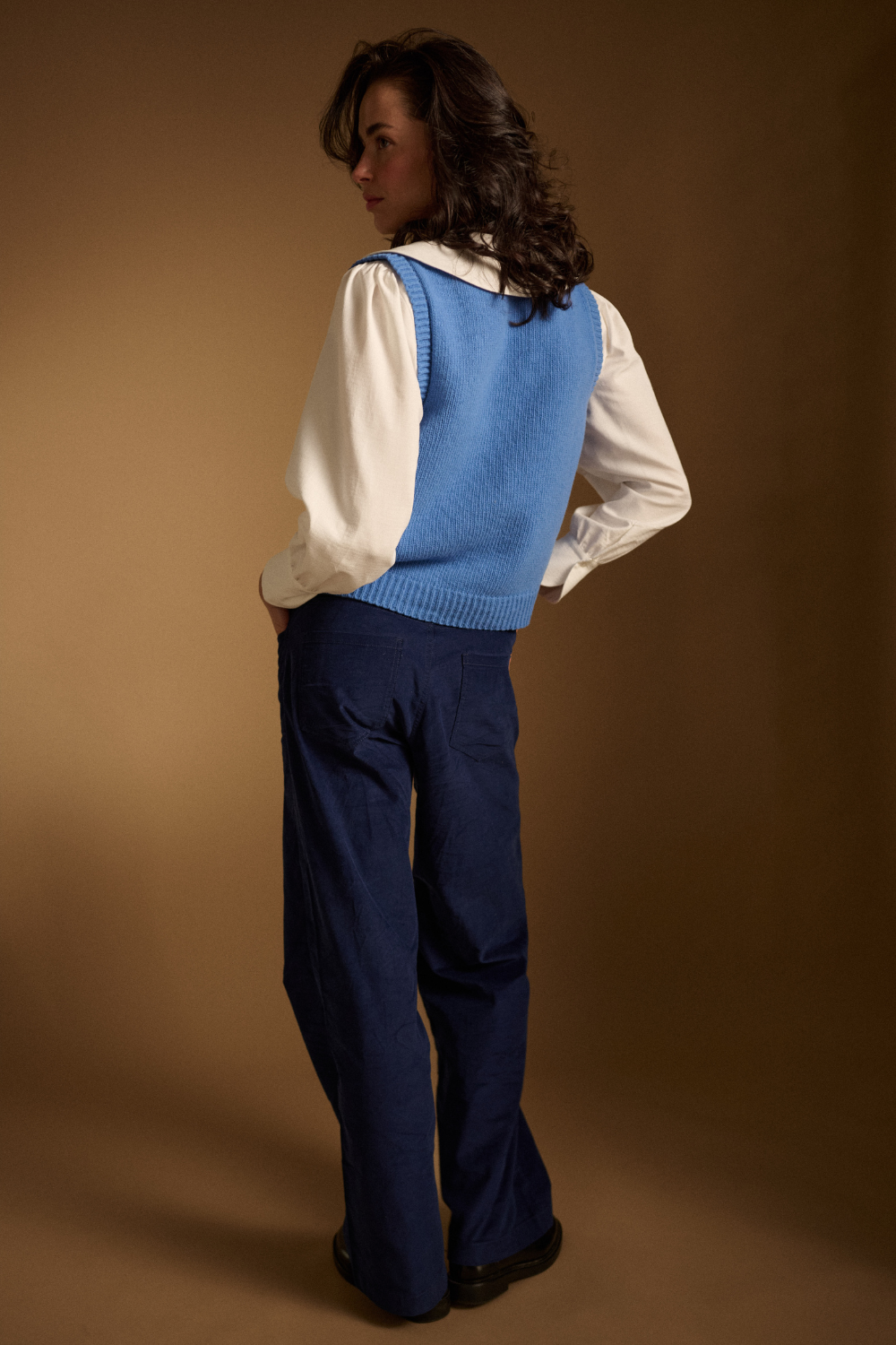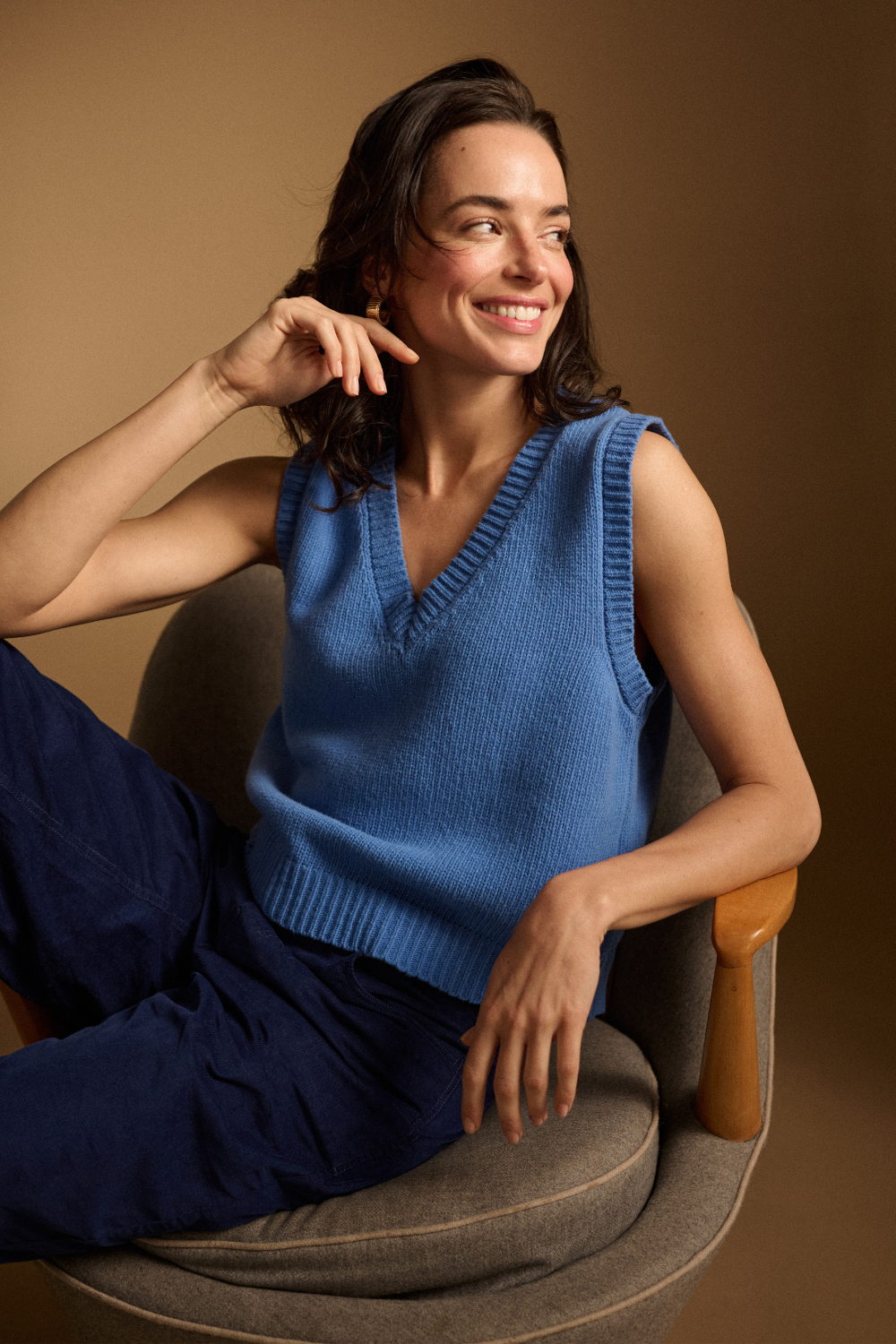 Wełniana kamizelka La Bohème to połączenie klasyki i artystycznego ducha. Powstała w Polsce z włoskiej przędzy, z mieszanki wełny. Jest miękka, ciepła i mięsista. Jej klasyczny krój z dekoltem V pięknie współgra z koszulami oraz sztruksami sleepless, tworząc stylizacje pełne kobiecego wdzięku. Dostępna w trzech wyjątkowych odcieniach — dla tych, które kochają prostotę z charakterem.