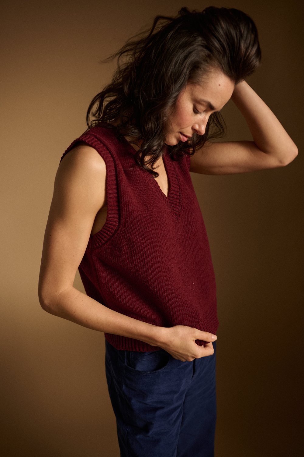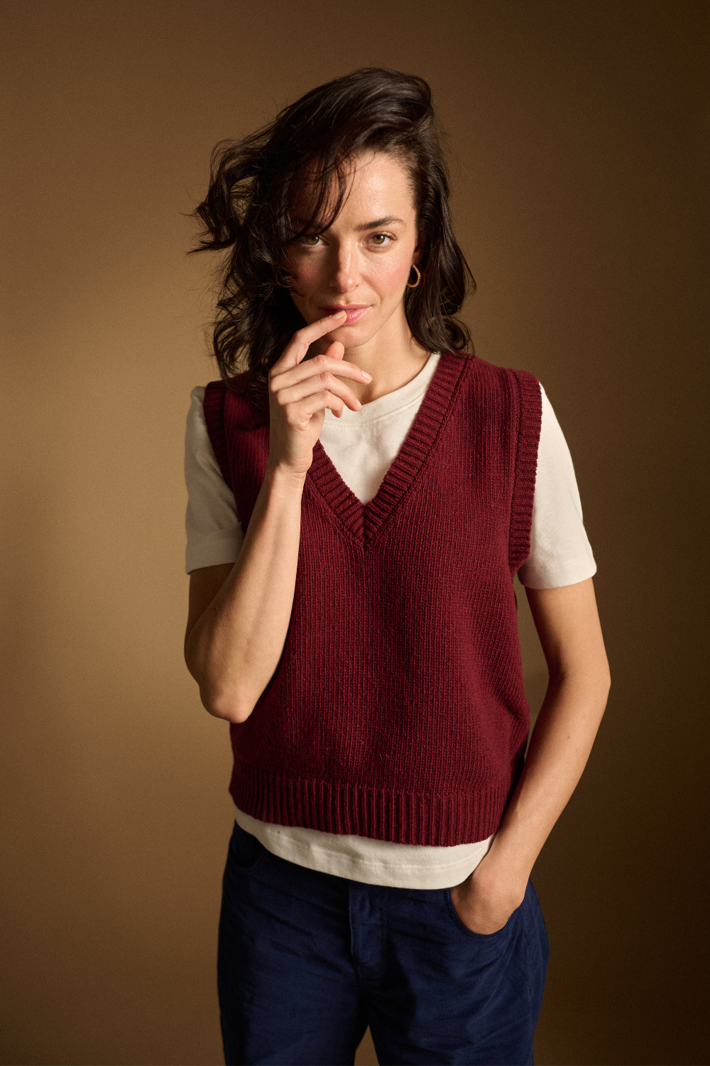 Wełniana kamizelka La Bohème to połączenie klasyki i artystycznego ducha. Powstała w Polsce z włoskiej przędzy, z mieszanki wełny. Jest miękka, ciepła i mięsista. Jej klasyczny krój z dekoltem V pięknie współgra z koszulami oraz sztruksami sleepless, tworząc stylizacje pełne kobiecego wdzięku. Dostępna w trzech wyjątkowych odcieniach — dla tych, które kochają prostotę z charakterem.