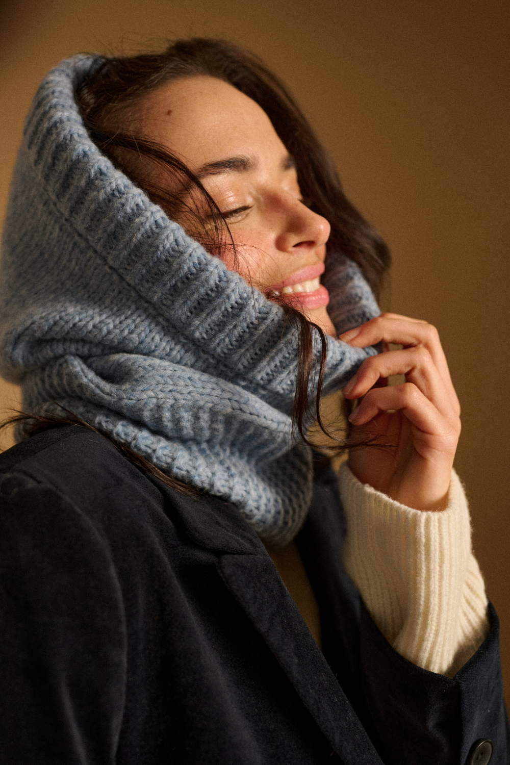 Najmodniejsze nakrycie głowy sezonu - komin, które otuli Cię w chłodniejsze i wietrzne dni. Jeden produkt, który doskonale zastąpi czapkę oraz szalik, dodatkowo pozwoli stworzyć Ci najmodniejsze stylizacje. Wykonany w całości z naturalnych materiałów, z wysokiej jakości mieszanki wełny oraz bawełny.